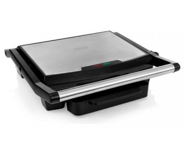 Este práctico grill de contacto es apto para preparar carnes, pescados, verduras, sandwiches, paninis, etc. Está provisto con un duradero revestimiento antiadherente, así que mantequilla o aceite no es necesario.