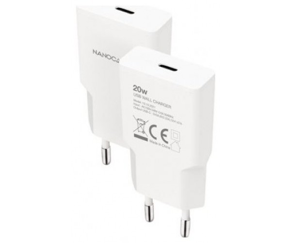 Cargador de Pared Nanocable 10.10.2021/ 1xUSB Tipo-C/ 20W/ Blanco