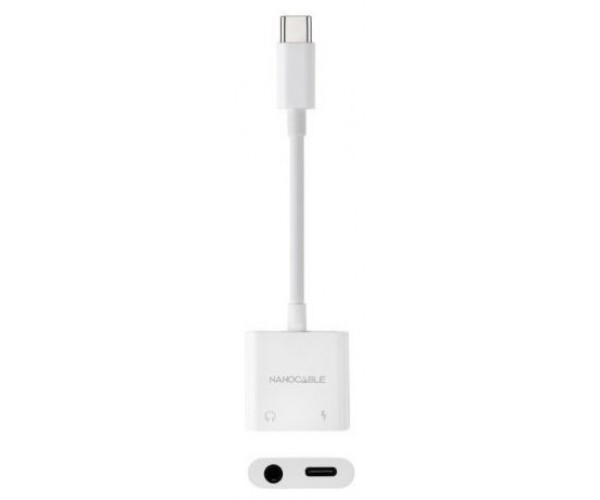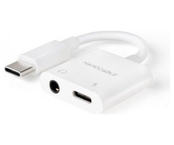 Adaptador Audio Nanocable 10.24.1206/ USB Tipo-C Macho - Jack 3.5 Hembra/ USB Tipo-C Hembra/ Blanco