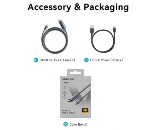 Cable Conversor HDMI 2.0 4K Vention ABLHG/ USB Tipo-C Macho - HDMI Macho/ USB Tipo-C PD 1.5m/ Gris