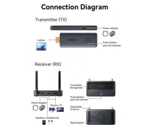 Adaptador de vídeo inalámbrico HDMI a HDMI Vention ADTH0
