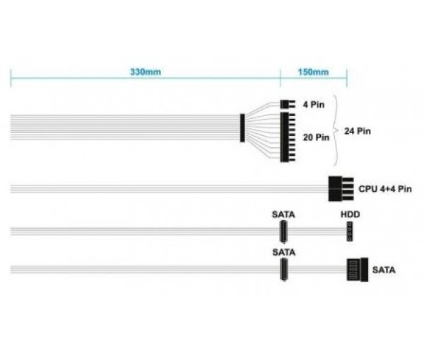 - 1 conector SATA + 1 conector Molex 330+150mm