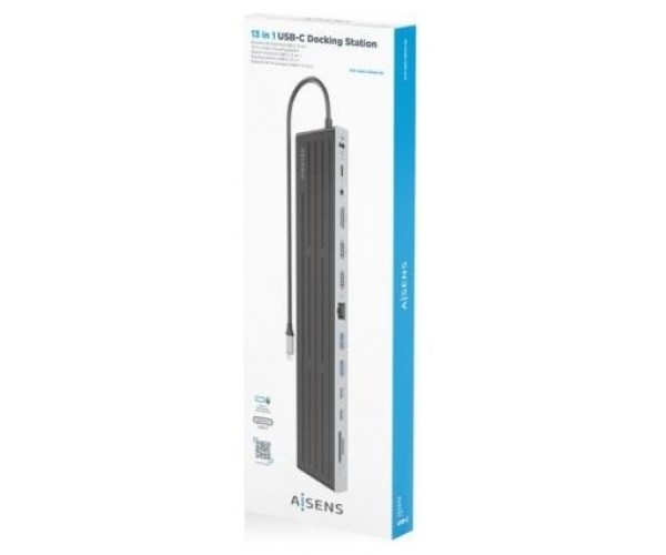 ASUC-13P042-GR – USB-C Dock 13 en 1, USB-C a 2xHDMI, 1xDisplayport, 1xRJ45, 3xUSB-A, 2xUSB-C, 1xUSB-C PD, 1xSD, 1xMicro SD, 1xAudio, 1xRanura Kensington, 30cm