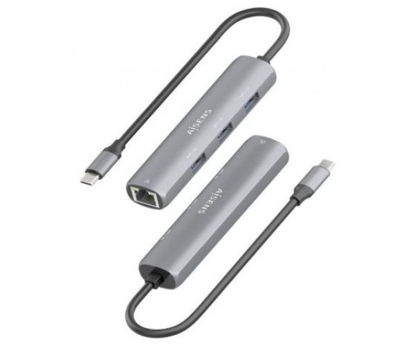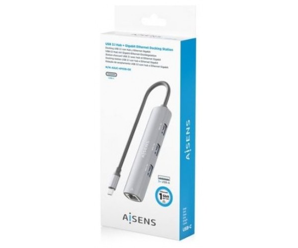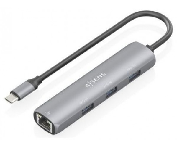 Hub USB Tipo-C Aisens ASUC-4P038-GR/ 3xUSB/ 1xRJ45/ Gris