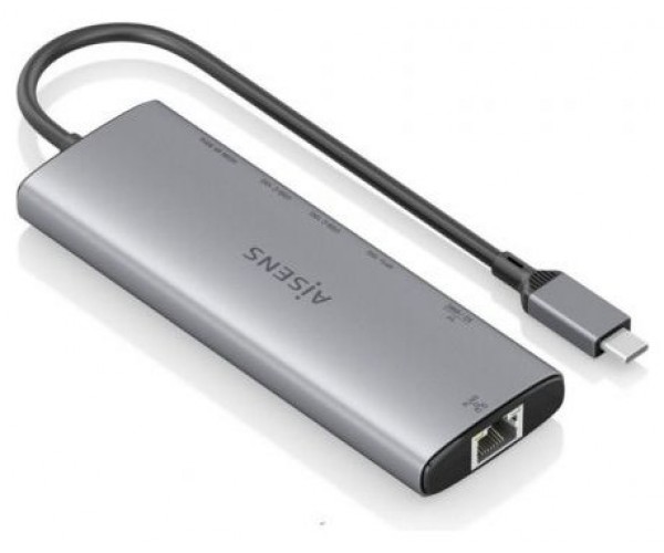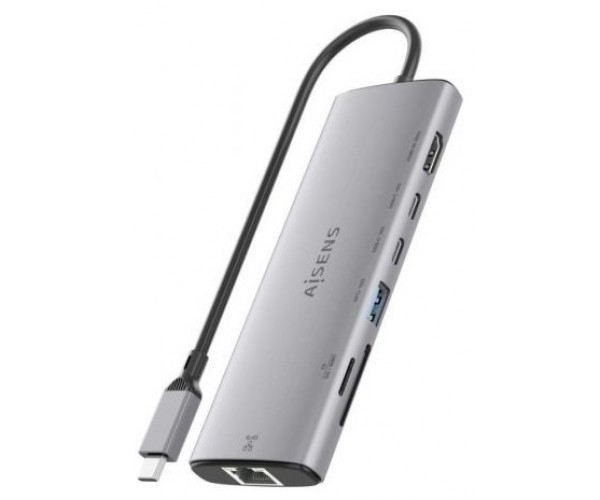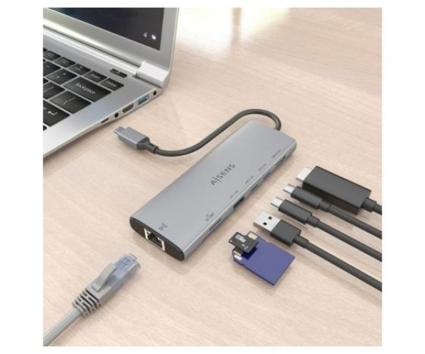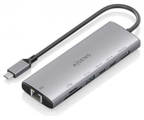 AISENS – USB-C DOCK 7 en 1, USB-C a 1xHDMI, 1xRJ45, 1xUSB-A 10G, 2xUSB-C 10G, 1xSD, 1xMICRO SD, GRIS, 20CM