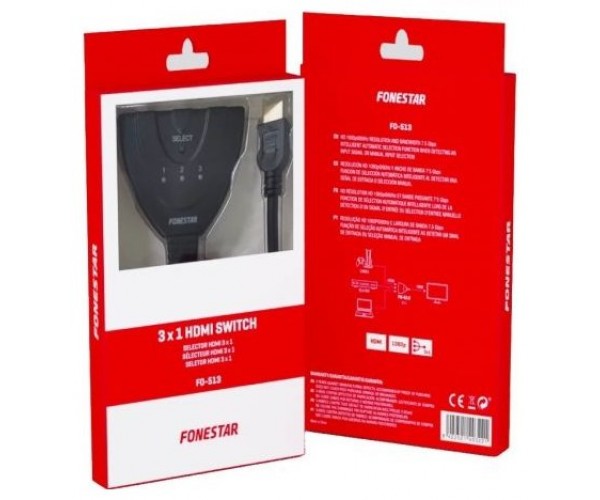 Splitter HDMI 3 en 1 Fonestar FO-513/ 3xHDMI
