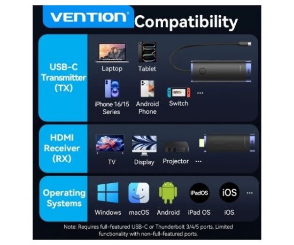 Adaptador/Transmisor de vídeo inalámbrico USB Tipo-C 3.2 - HDMI Vention TPVBB