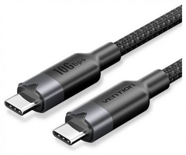 Cable USB 3.2 Tipo-C 5A Vention TRGBH/ USB Tipo-C Macho - USB Tipo-C Macho/ Hasta 100W/ 10Gbps/ 2m/ Negro
