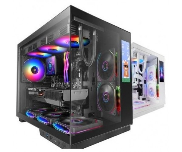 Descubre la MC-MIRAGE, una caja gaming ATX que lleva la personalización y el rendimiento a un nuevo nivel gracias a su exclusiva pantalla integrada LCD IPS de 7,2” y su elegante diseño panorámico en cristal templado. Con una estructura de doble cámara, compatibilidad avanzada y espacio para hardware de última generación, está creada para entusiastas, gamers y creadores que buscan un setup único, sofisticado y cargado de innovación.