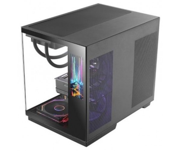 El frontal y el lateral en cristal templado continuo ofrecen una visión clara y envolvente del interior. Este diseño panorámico resalta cada componente y amplifica los efectos de iluminación ARGB, creando un espectáculo visual que une elegancia, creatividad y personalidad.