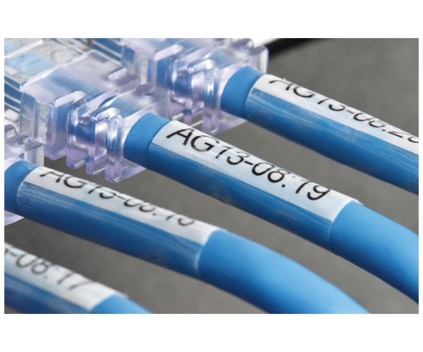 Cinta autolaminada. Texto negro sobre fondo blanco. Ancho: 24 mm. Longitud: 8 m