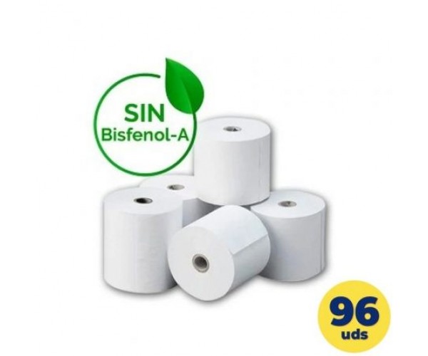 Caja de 96 rollos papel térmico BPA free (libre de bisfenol A) 80 x 55mm.