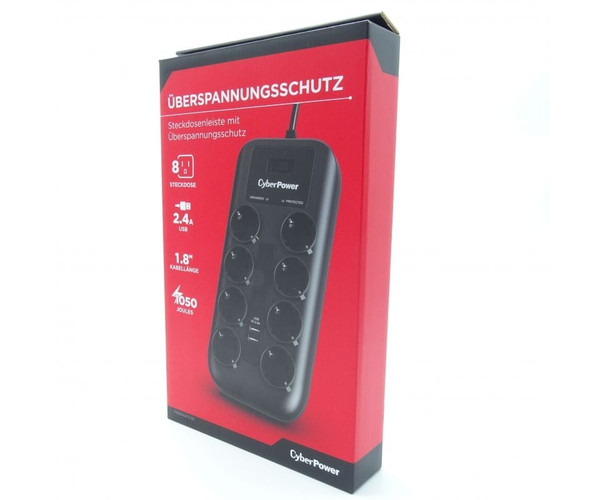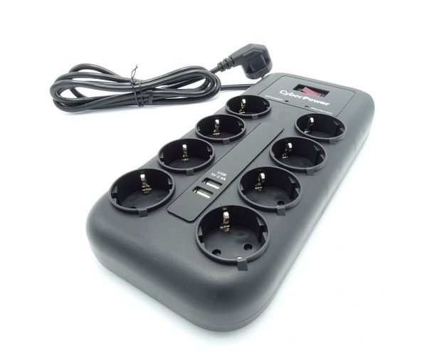 Regleta con Interruptor Cyberpower P0820SUD0-DE/ 8 Tomas de corriente/ 2 USB/ Cable 1.8m/ Negra