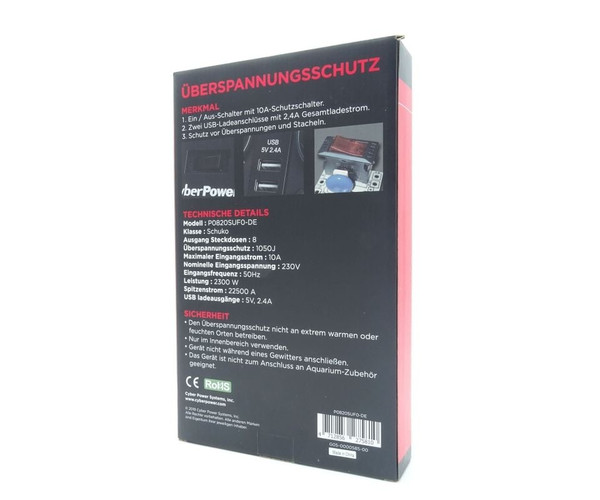 REGLETA CYBERPOWER CYB-REGLETA P0820SUD0-DE - 8*SCHUKO - 2*USB - INTERRUPTOR ON/OFF
