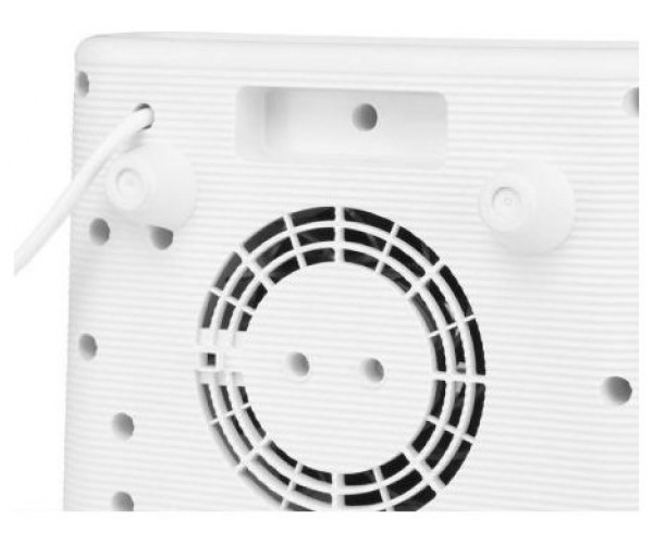 Posee indicadores luminosos para advertir de su funcionamiento. Además, en el apartado de las seguridad, incluye un sistema de protección contra sobrecalentamiento que apaga el aparato automáticamente si excede de la temperatura habitual. Su diseño horizontal le aporta una gran estabilidad en todo momento, y un asa permite transportarlo fácilmente por todas las estancias del hogar.