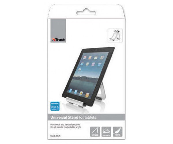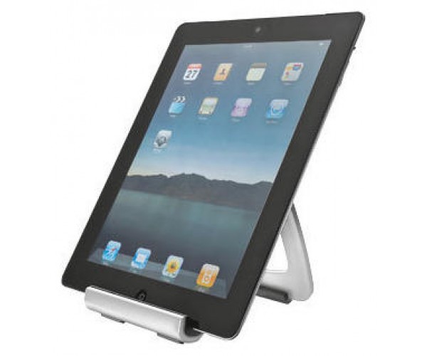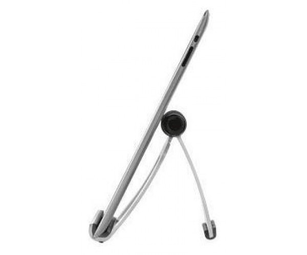 Soporte universal para tableta para disfrutar de una cómoda posición de visualización; se puede utilizar con casi cualquier tipo de tableta. Al plegarse, queda completamente plano, con lo cual puede transportarse fácilmente en cualquier bolsa. Ángulo de visualización ajustable. Posición vertical u horizontal.