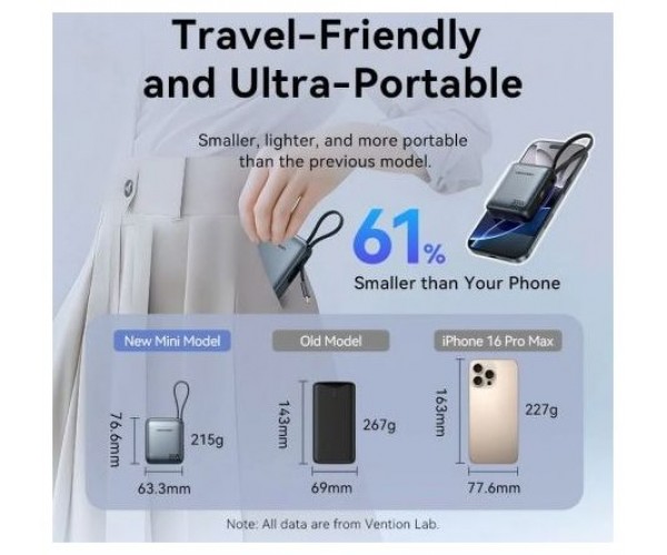 Powerbank 10000mAh Vention FHEN0/ 35W/ Beige/ Incluye Cable USB Tipo-C