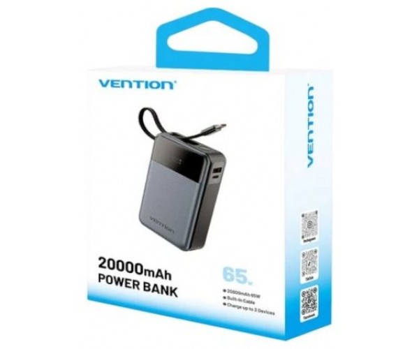 Powerbank 20000mAh Vention FHYB0/ 65W/ Gris/ Incluye Cable USB Tipo-C