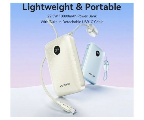Powerbank 10000mAh Vention FKAL0-C/ 22.5W/ Azul/ Incluye Cable USB Tipo-C