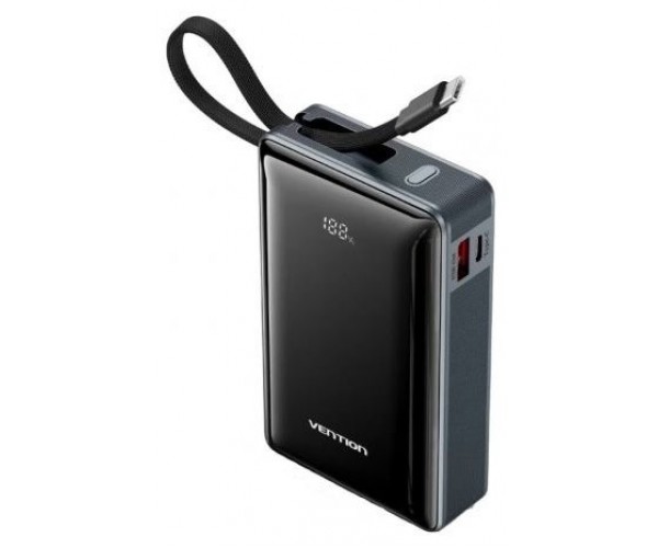 20000mAh Power Bank (USB-C + USB-C/USB-A) with Built-in USB-C Cable 65W Gray LED Display Type