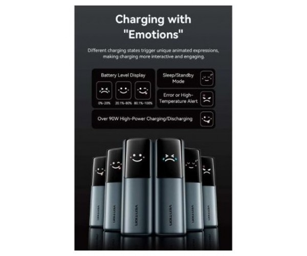 Powerbank 20000mAh Vention FKFH0/ 165W/ Gris/ Incluye Cable USB Tipo-C