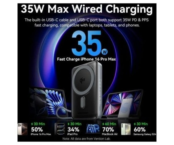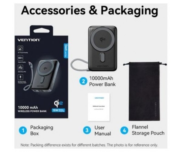 Powerbank 10000mAh Vention FKHH0/ 35W/ Wireless/ Gris/ Incluye Cable USB Tipo-C