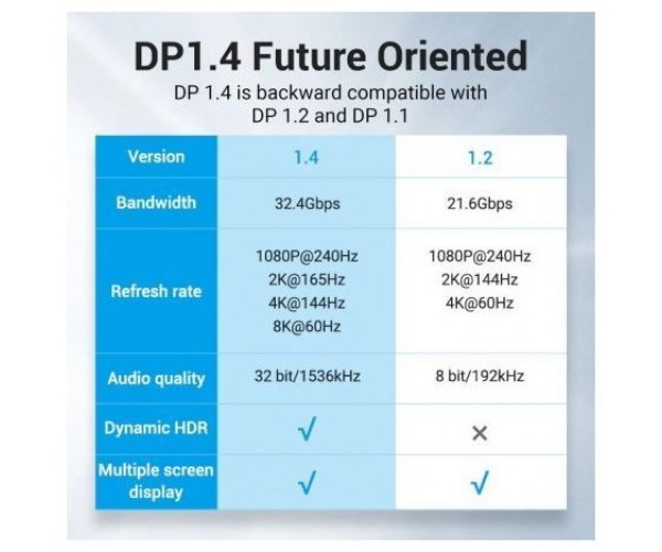 No es solo un cable, es una inversión en la mejor experiencia visual. Actualice al cable DisplayPort 1.4 8K y acceda a un mundo de claridad impresionante, rendimiento inigualable y entretenimiento envolvente
