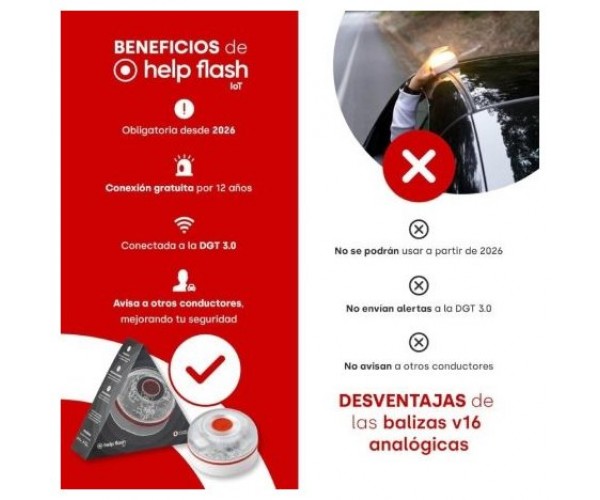 Además de su función de señal luminosa, esta baliza V16 integra tecnología NB-IoT que, en caso de emergencia, permite al resto de usuarios de la vía conocer tu ubicación y mejorar tu seguridad.