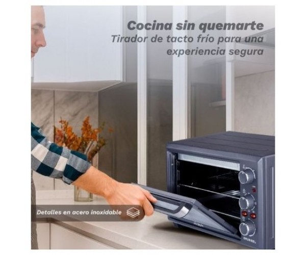 Horno eléctrico de GRUNKEL HR-28COOK, 28 L, 1600W, convección independiente, 3 modos, luz interior, 60 min, 230 °C, acero inox y tirador frío.