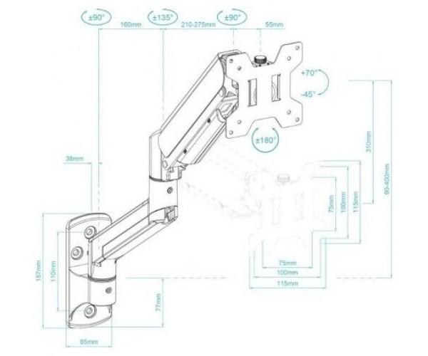 • Brazo regulable con pistón de gas