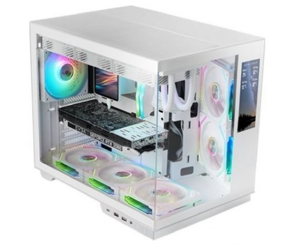 Descubre la MC-MIRAGE, una caja gaming ATX que lleva la personalización y el rendimiento a un nuevo nivel gracias a su exclusiva pantalla integrada LCD IPS de 7,2” y su elegante diseño panorámico en cristal templado. Con una estructura de doble cámara, compatibilidad avanzada y espacio para hardware de última generación, está creada para entusiastas, gamers y creadores que buscan un setup único, sofisticado y cargado de innovación.