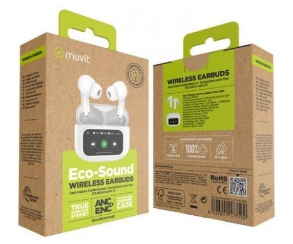Auriculares True Wireless Blancos muvit for change con Pantalla, ANC y ENC