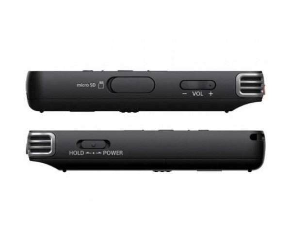 El ICD-PX470 cuenta con una memoria integrada de 4 GB, lo que equivale a un tiempo máximo de grabación de 59 horas y 35 minutos en MP3 estéreo a 128 kbps. Puede ampliar la capacidad de memoria con una tarjeta micro SD y obtener hasta 32 GB adicionales, lo que le permite grabar más de 536 horas (Micro SD 32 GB, MP3 a 128 kbps).