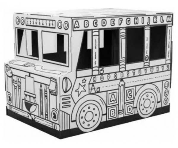 Juguete de cartón en forma de autobus escolar para pintar y jugar. Fabricado con cartón corrugado resistente y fácil de construir sin necesidad de adhesivos.Diseño interactivo, puedes abrir y cerrar puertas, ventanas y trampillas de techo. Cumple con: Artículo 18 de la Directiva sobre seguridad de los juguetes 2009/48/CE y el Reglamento sobre juguetes (seguridad) de 2011.Fabricado con cartón certificado FSC® y totalmente reciclable. Dimensiones completamente ensamblado Al 78,74 x An 114,3 x Pr 83,82 cm