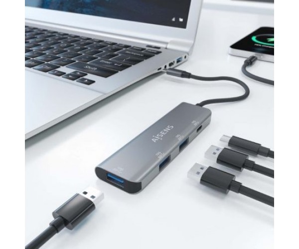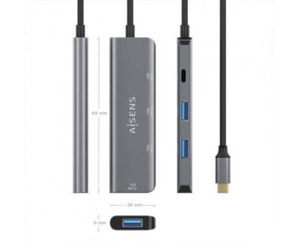 - AISENS - HUB USB 3.2 GEN2 10G USB-C, USB-C/M-1xUSB-C/H-3xUSB-A/H, GRIS, 15CM