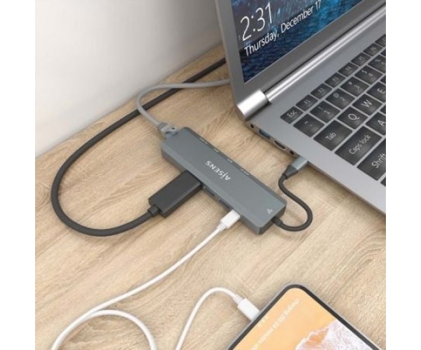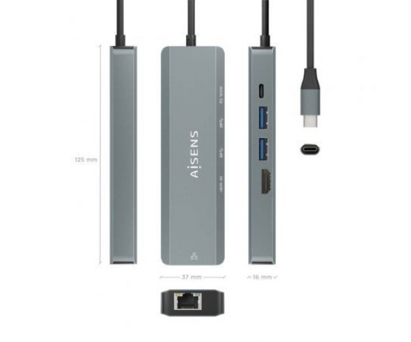 - AISENS - USB-C DOCK 5 EN 1, USB-C A 1xHDMI, 1xRJ45, 2xUSB, 1xPD, GRIS, 15CM