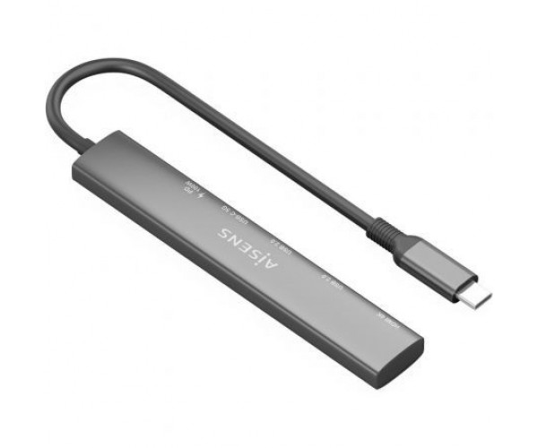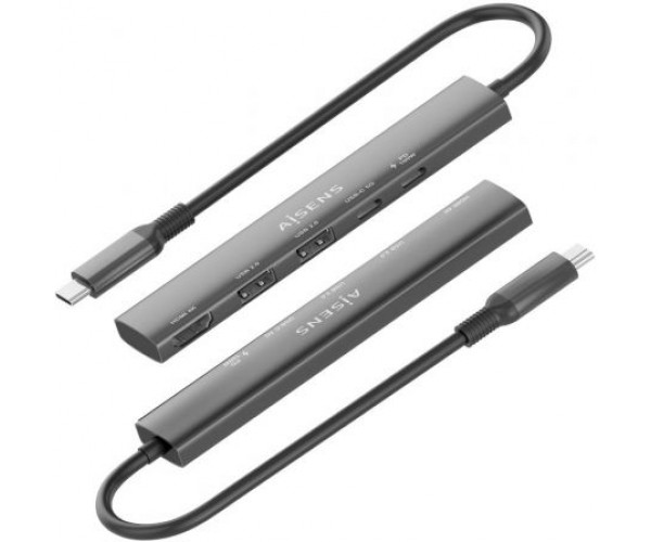 AISENS - USB-C DOCK 5 EN 1, USB-C A 1xHDMI 2xUSB-A 1xUSB-C 1xUSB-C PD, GRIS, 15CM