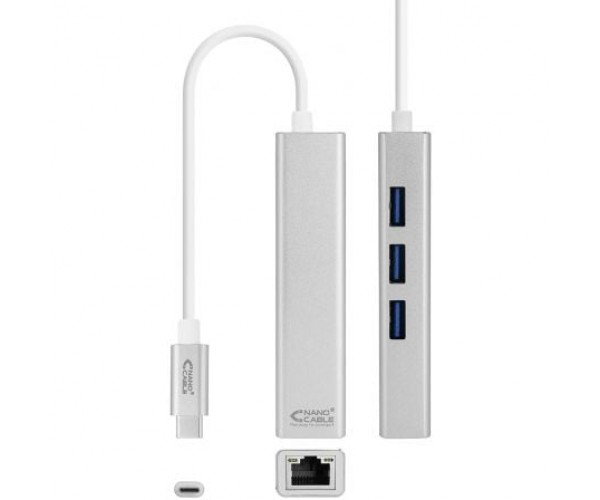 Hub USB Tipo-C Nanocable 10.03.0404/ 3xUSB/ 1xRJ45/ Gris