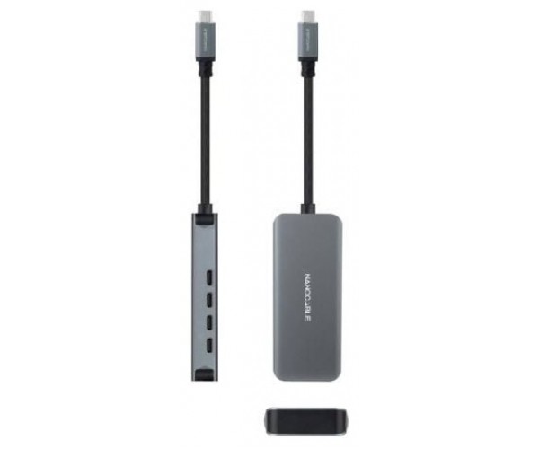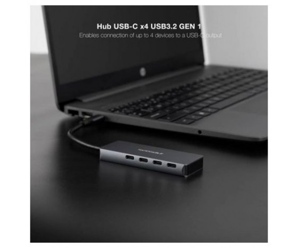 Hub USB Tipo-C Nanocable 10.16.4504/ 4xUSB Tipo-C/ Gris