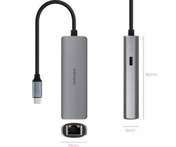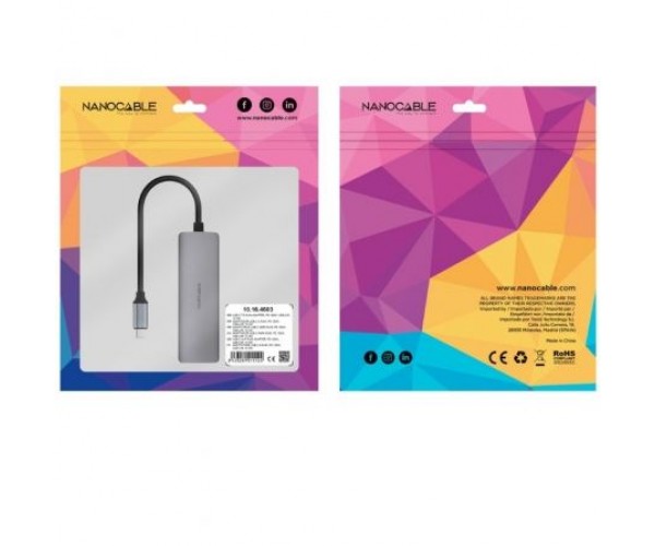 Hub USB Tipo-C 3.1 Nanocable 10.16.4603/ 1xUSB Tipo-C PD/ 1xRJ45/ Gris