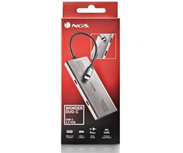Hub USB Tipo-C NGS WonderDuo-C / 2xUSB/ 2xUSB Tipo-C/ Gris