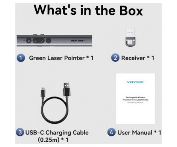 Presentador Inalámbrico por Bluetooth Vention KQJH0/ 2.4GHz/ Gris