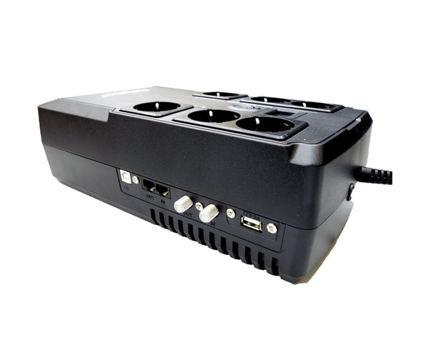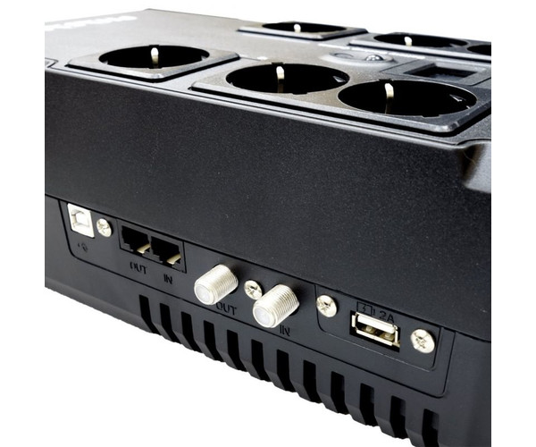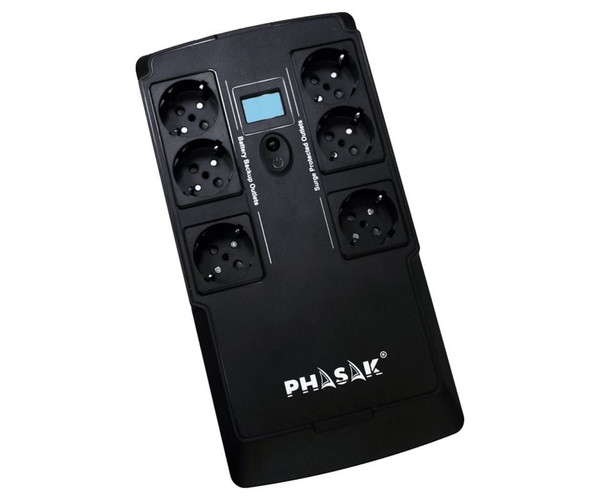 SAI Phasak de 800 VA con tecnologÍa digital interactiva. Fueron sometidos a rigurosos ensayos y controles de calidad, superando estos ensayos de manera satisfactoria. Tienen control por microprocesador para un rendimiento y apagado óptimos del sistema. El Software de Gestión, que puede descargar de Internet e instalar según sus necesidades, hace que el SAI sea completamente integrable con su sistema. Con estos UPS de línea interactiva, los voltajes que son demasiado bajos o demasiado altos se corrigen automáticamente sin usar la batería. Esta función garantiza la disponibilidad del máximo tiempo de respaldo en caso de una interferencia en la tensión eléctrica, ofreciendo una protección confiable y duradera. Con monitorización vía puerto USB y protección de un puerto RJ-45 y cable coaxial. También tiene un puerto USB para cargar dispositivos.