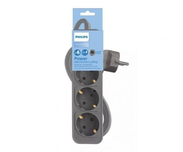 Regleta con Interruptor Philips CHP2134G/ 3 Tomas de corriente/ Cable 1.5m/ Gris