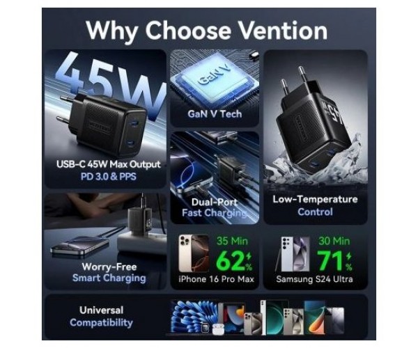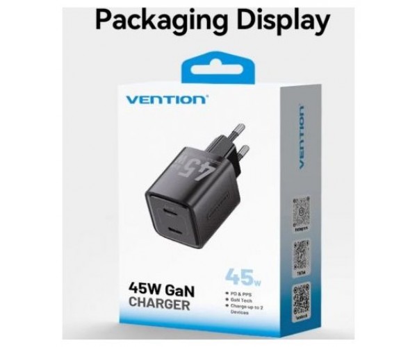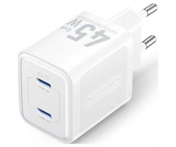Cargador de Pared GaN Vention FEFW0-EU/ 2xUSB Tipo-C/ 45W
