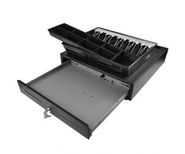 460 HQ-B - CAJÓN PORTAMONEDAS AUTOMÁTICO 46 X 46,5 CM, 5 COMPARTIMENTOS PARA BILLETES, 8 GAVETAS PARA MONEDAS, RJ12, 24V, NEGRO