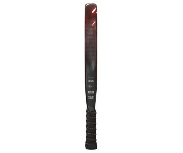 Está construida con carbono 18K Textreme en las caras, un material de alta rigidez que potencia los golpes ofensivos sin perder precisión. El marco de carbono 3K aporta consistencia y durabilidad, mientras que el núcleo de goma EVA garantiza un buen tacto y amortiguación. El acabado brillante le confiere una estética profesional, y el sistema Dual Pro Grip junto al cordón reemplazable mejora la ergonomía y reduce las vibraciones.