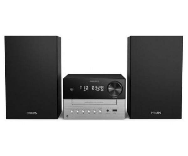 Con su unidad central y las carcasas de los altavoces en dos tonos sutiles, esta atractiva microcadena recuerda el diseño de los componentes Hi-Fi independientes clásicos. El diseño compacto facilita la colocación del sistema en casa, y cuenta con botones en la parte frontal de la unidad para la reproducción y la selección de la fuente.