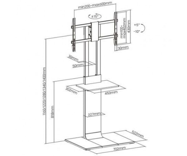 - Ajustes de altura del TV: 1160 / 1220 / 1280 / 1340 / 1400 mm