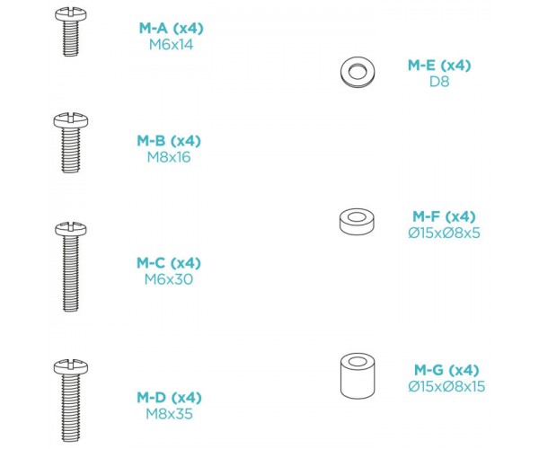 • Compatible con VESA: 200x200, 300x200, 400x200, 300x300, 400x300, 400x400, 600x400